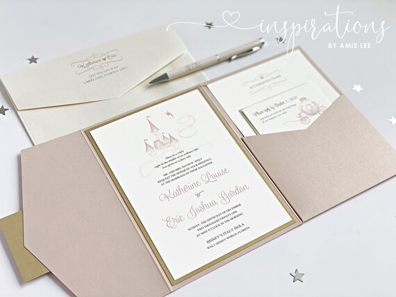 The accordion style invite is printed double sided. Shop Etsy the place to express your creativity through the buying and selling of handmade and vintage goods. Printed Personalised Wedding Invitations Disney CastleHappily Ever After Grey White Packs of 10 5 out of 5 stars 167 175 FREE UK delivery.